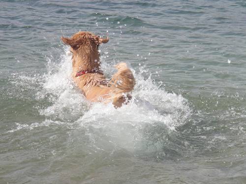 飛び込んでいく後姿が、なにかの動物に見える・・・。(耳が・・・