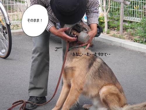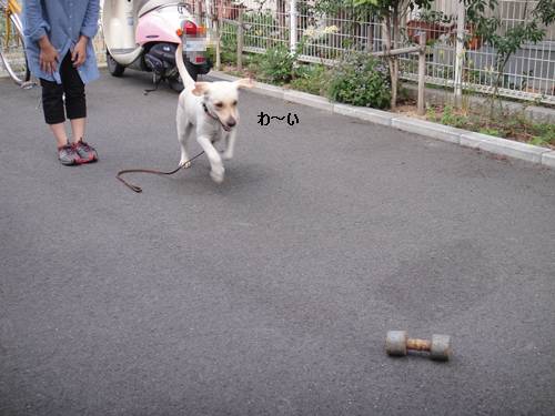 問題なくできました。でも、大きいダンベルは、初めてらしく咥えづらそう・・・。