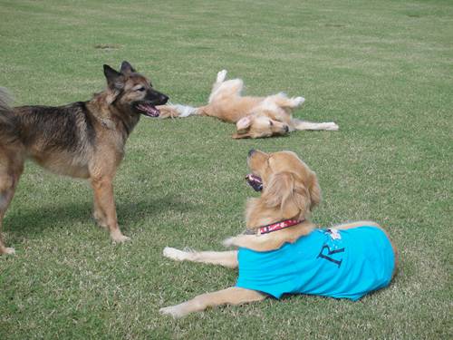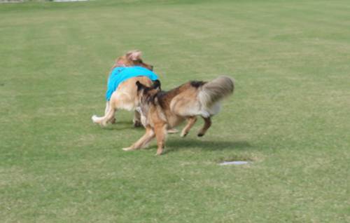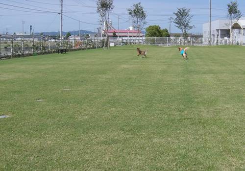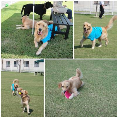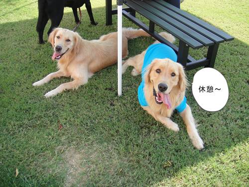 芝生が気持ちいいのか、ゴルコンビ(はぴ・ラン)は、ゴロスリばかりしてました。