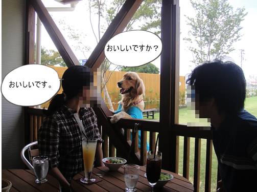 ワタシたちが食べている間、ワンたちは、外からじーーーっと
