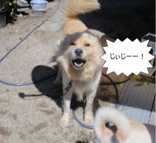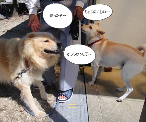 じぃじは、まずは、リキとサイにただいま~。