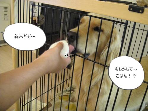 普段は、ドッグフードのみのランくんですが、今日は新米の食べ始めなので、
