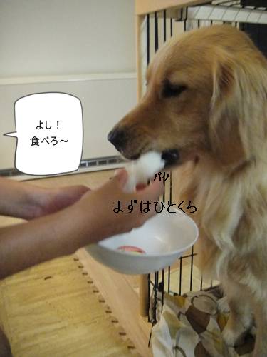 ランくん、いきなり一口で食べちゃいました。