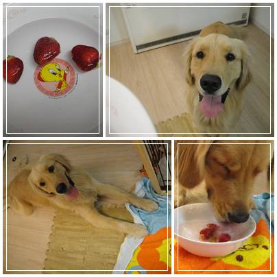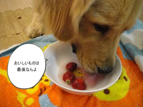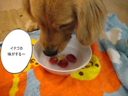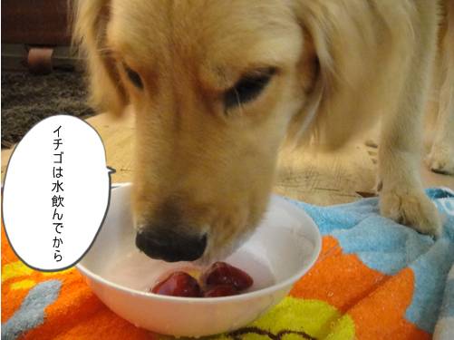 ランくん、お水ばっかりじゃなくって、イチゴも食べたら?