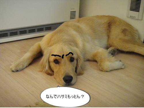 早速、実家にもって行き、実家の3わんこも入れてやろうとしていると・・