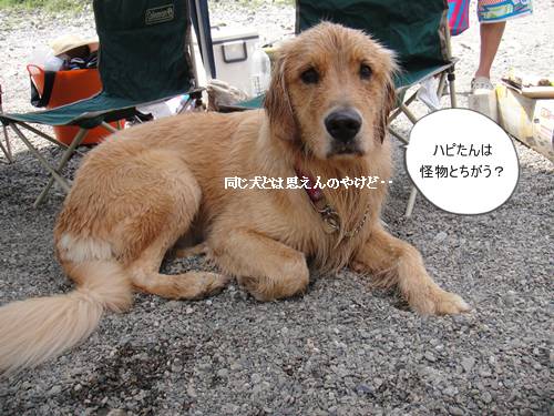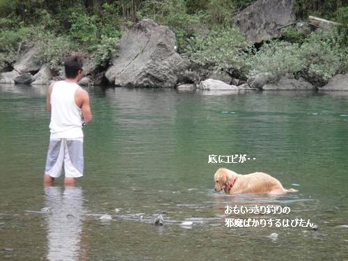 くまとぉちゃんに、ひたすらまとわりついて、釣りの邪魔をする、はぴたん。