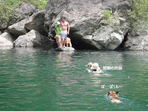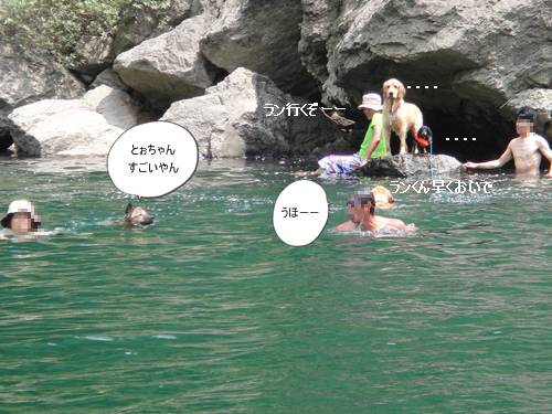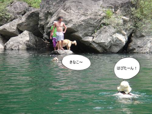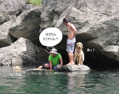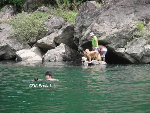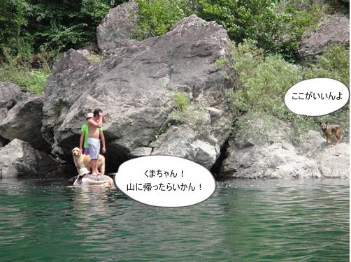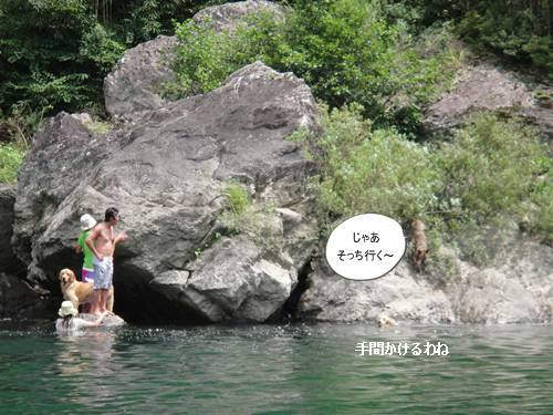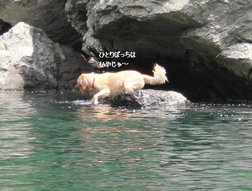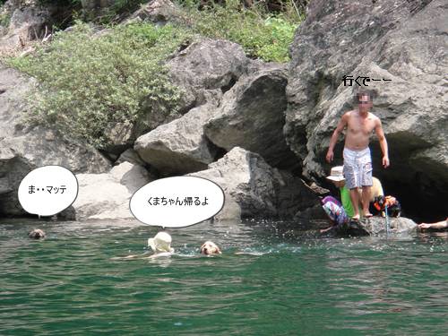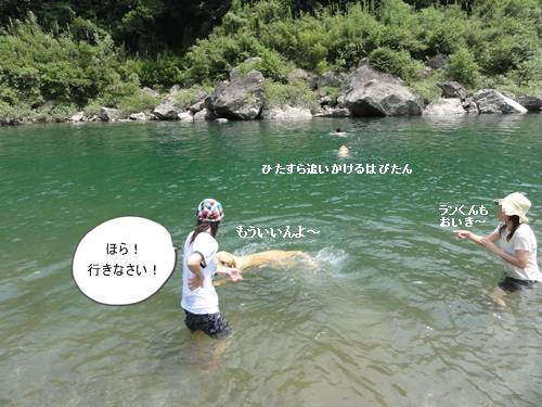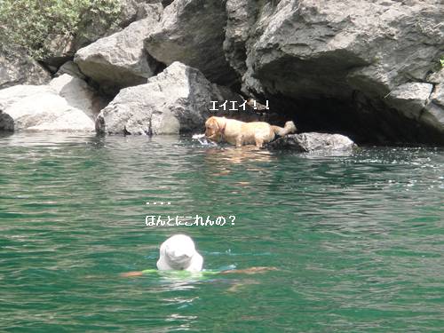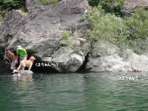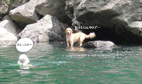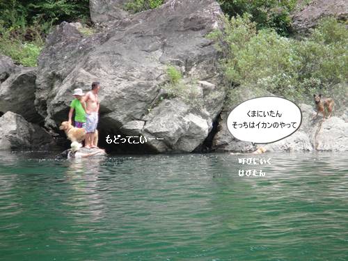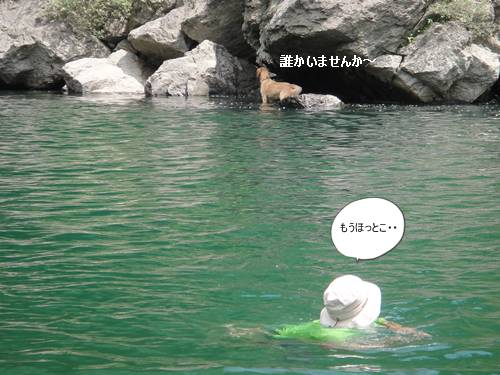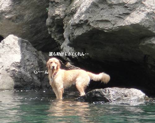 岸から、みんなが呼んでいるのに、来られないランくん。