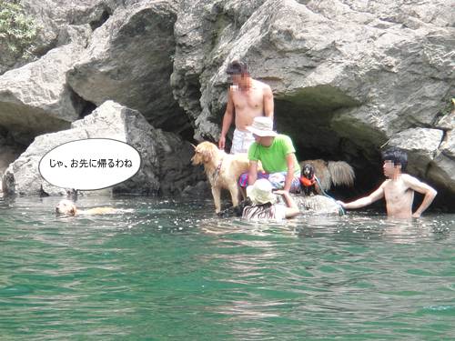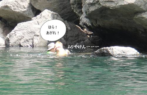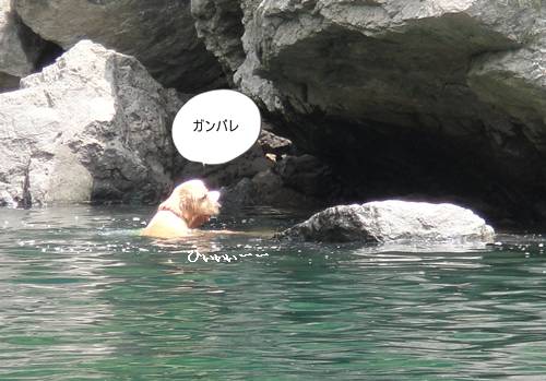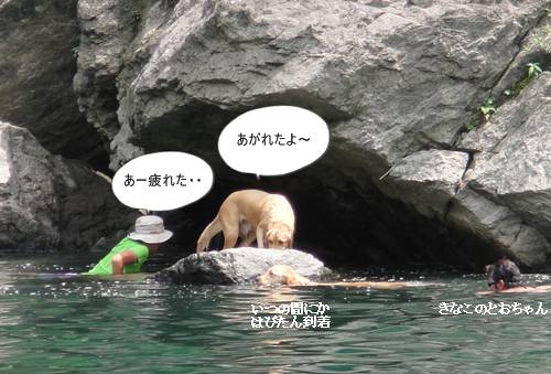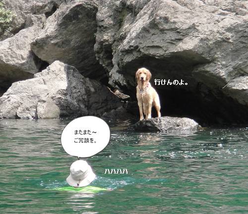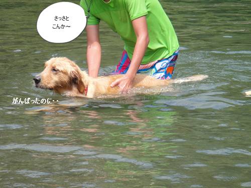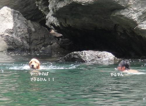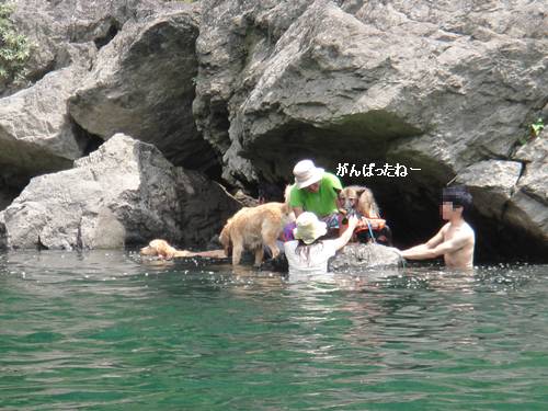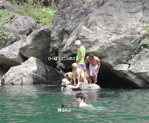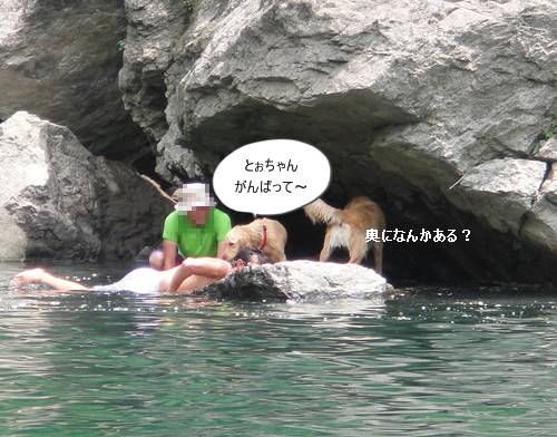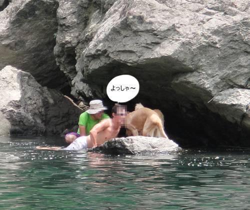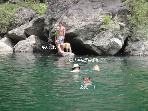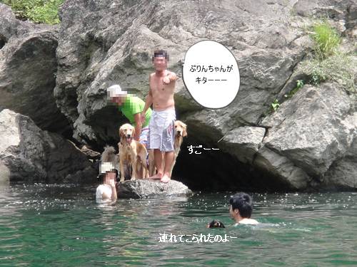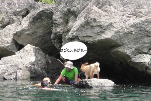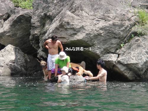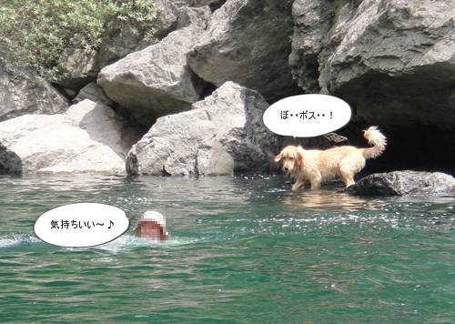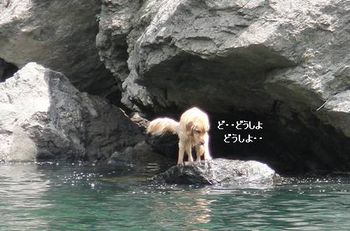 岸から、みんなが呼んでいるのに、来られないランくん。