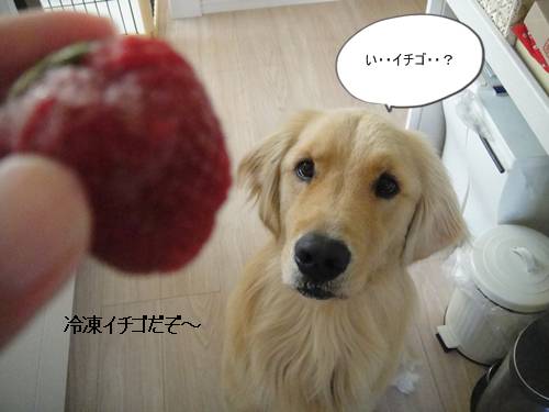久々に登場のイチゴなので、ちょっと「?」なランくん。