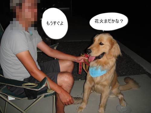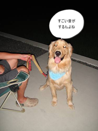 そんなこんなで、ワイワイと見ていましたが、リキは花火には興味がない模様・・。