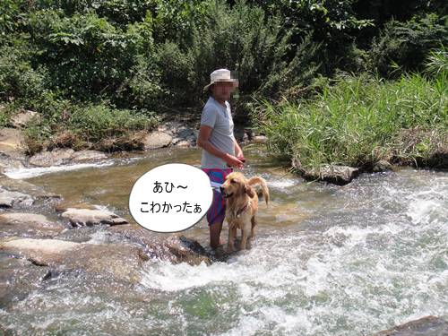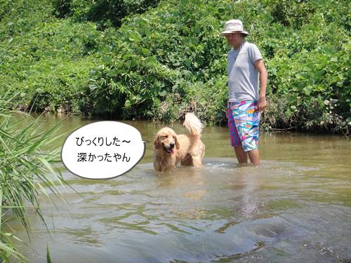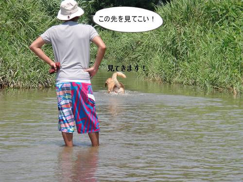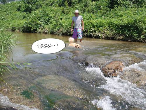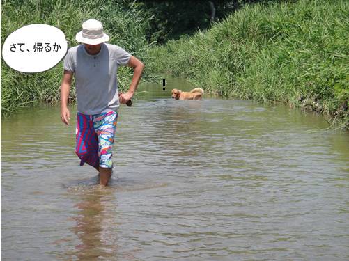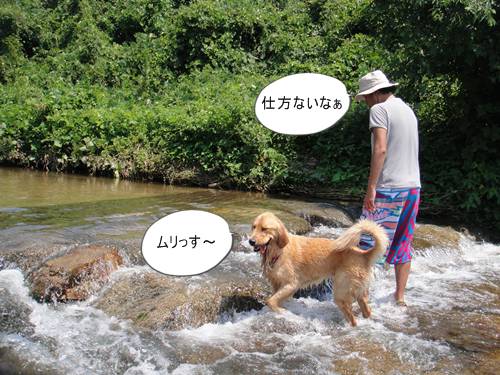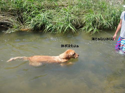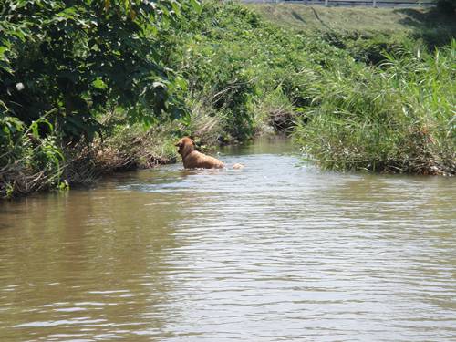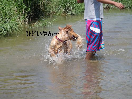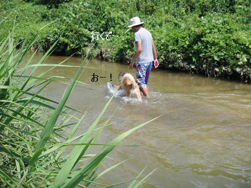 ランの体を早く冷やすために、一目散に、川へ入水!!