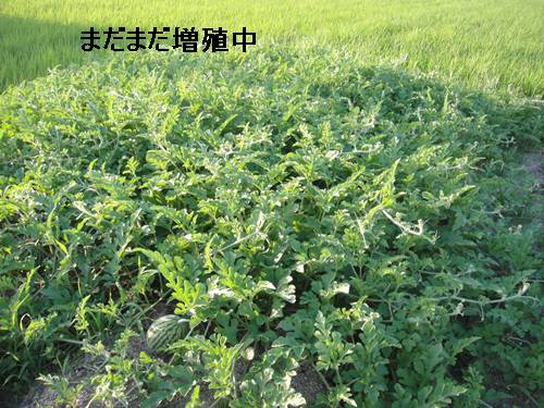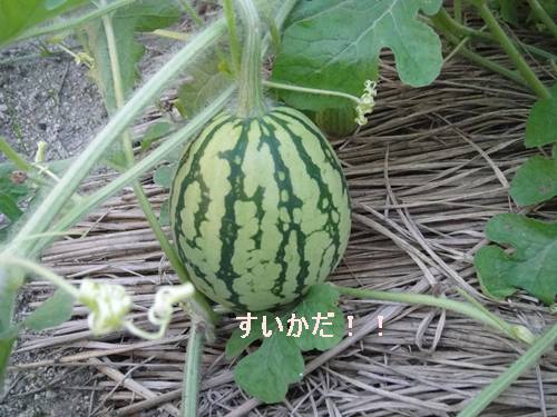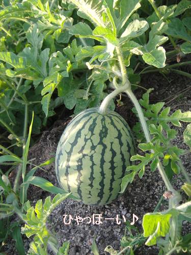スイカの苗を2株だけ、植えてもらったあのスイカ畑・・・。