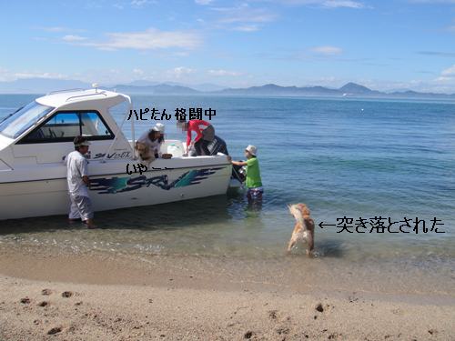 そして、抱っこで船にどうにか乗せ、島をあとに~。