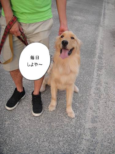 よだれを撒き散らしながら、お散歩するランくん、、、。