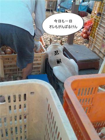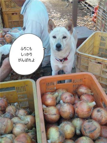 そのたまねぎの作業のかたわらに、いつもいるわんこが一頭・・・。