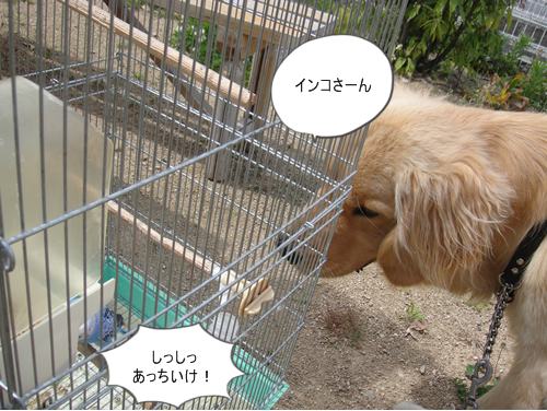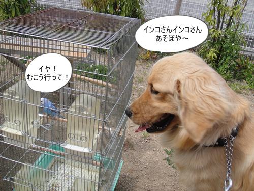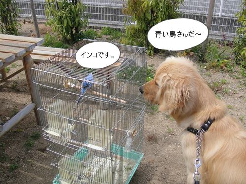 インコを見続ける、ランくんをひっぱりながら、レッスンへ・・。(汗