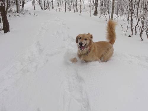 雪に埋もれたり、ひとしきり遊んだランくん。