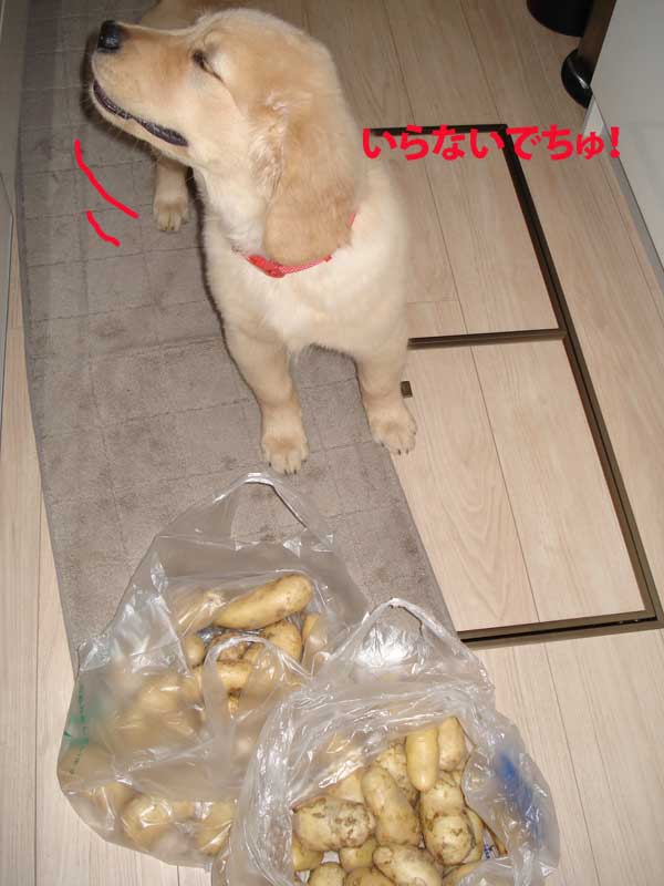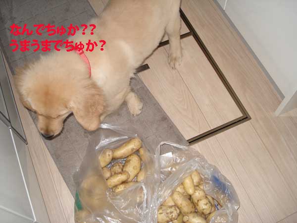 しっぽふりふりお出迎えすると、父が掘りたてじゃがいもを持ってきてくれた。(*^▽^*)